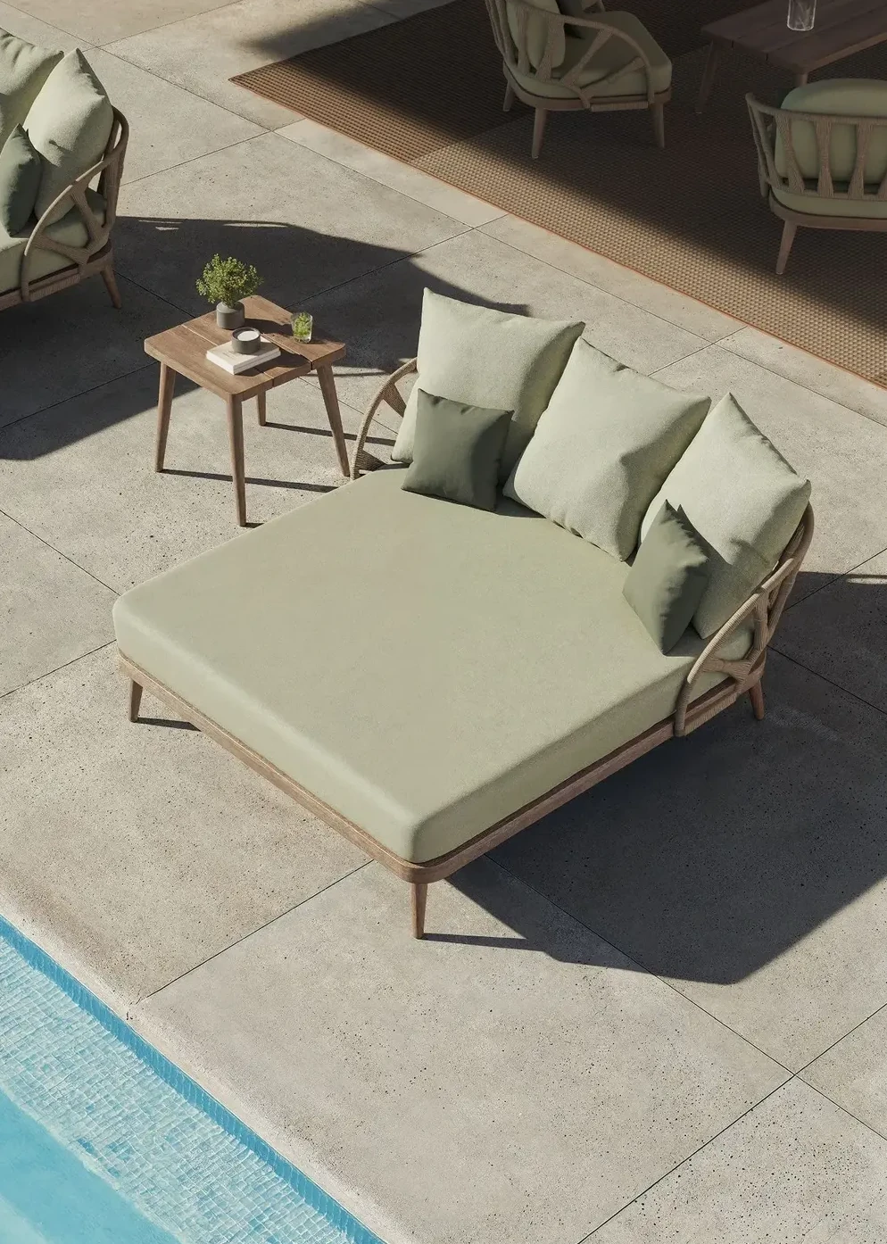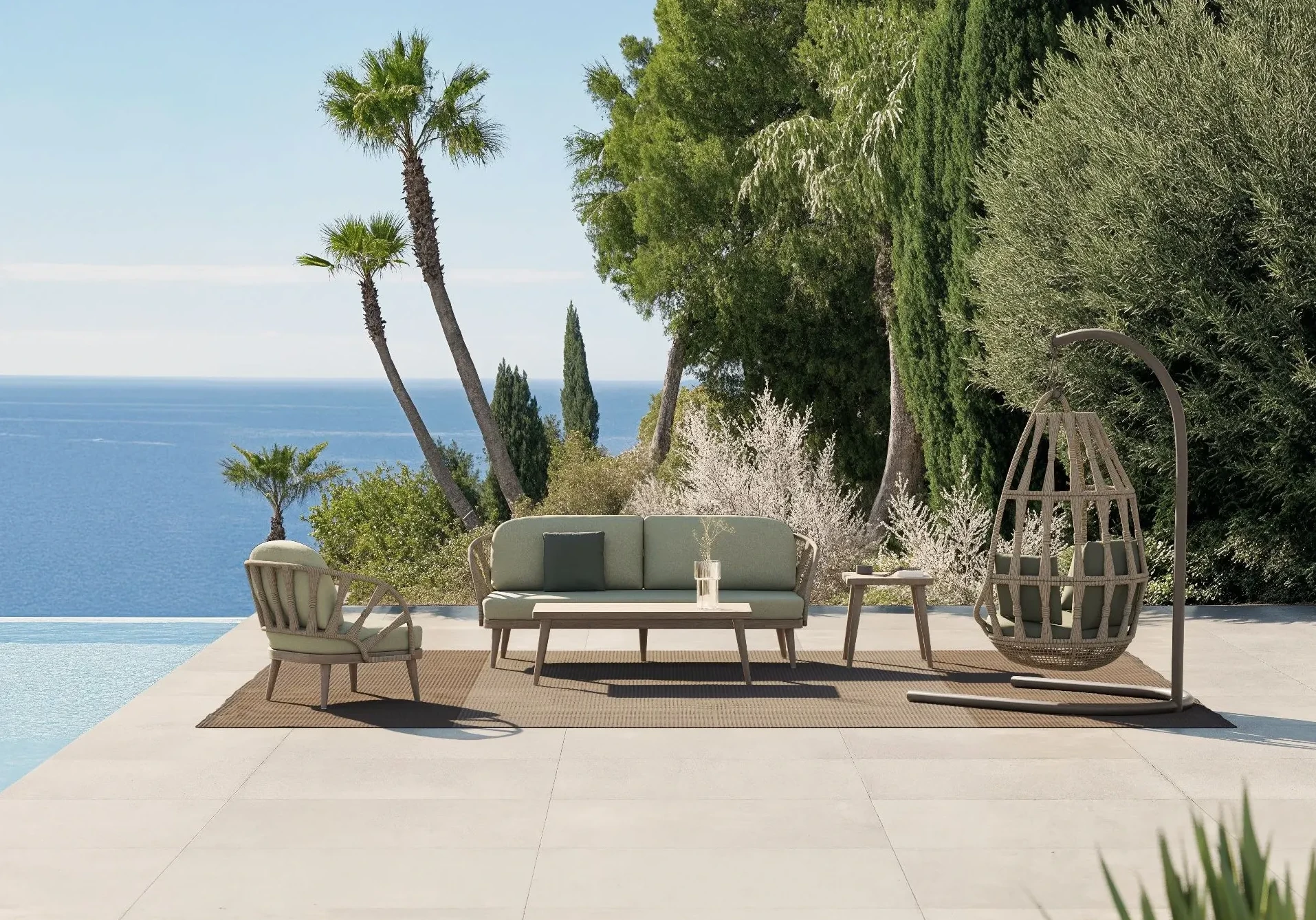 Una evolución de nuestro icónico diseño, que combina la calidez de los materiales nobles con una silueta inspirada en la botánica mediterránea, logrando una ligereza visual que permite que el paisaje sea el verdadero protagonista.
