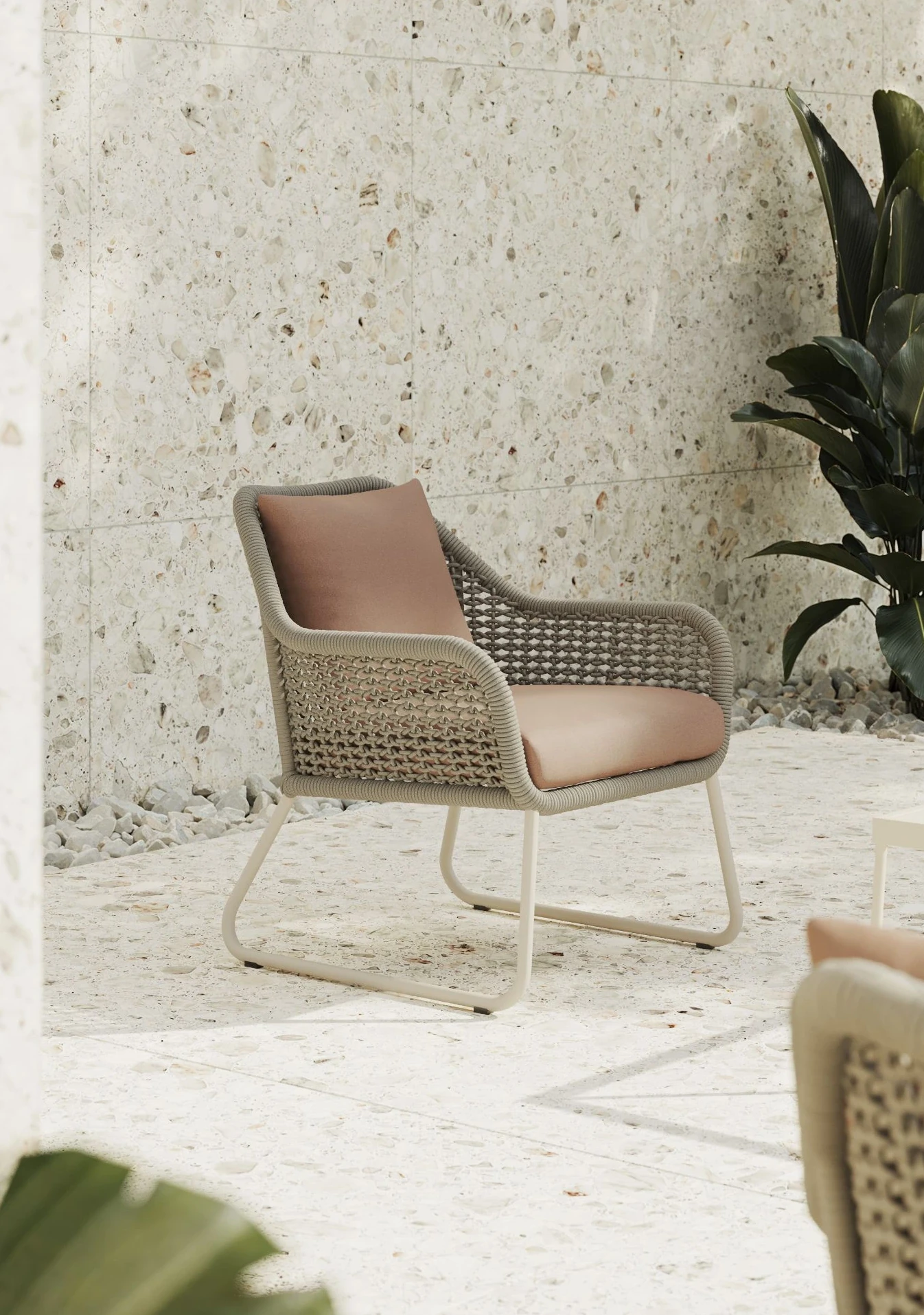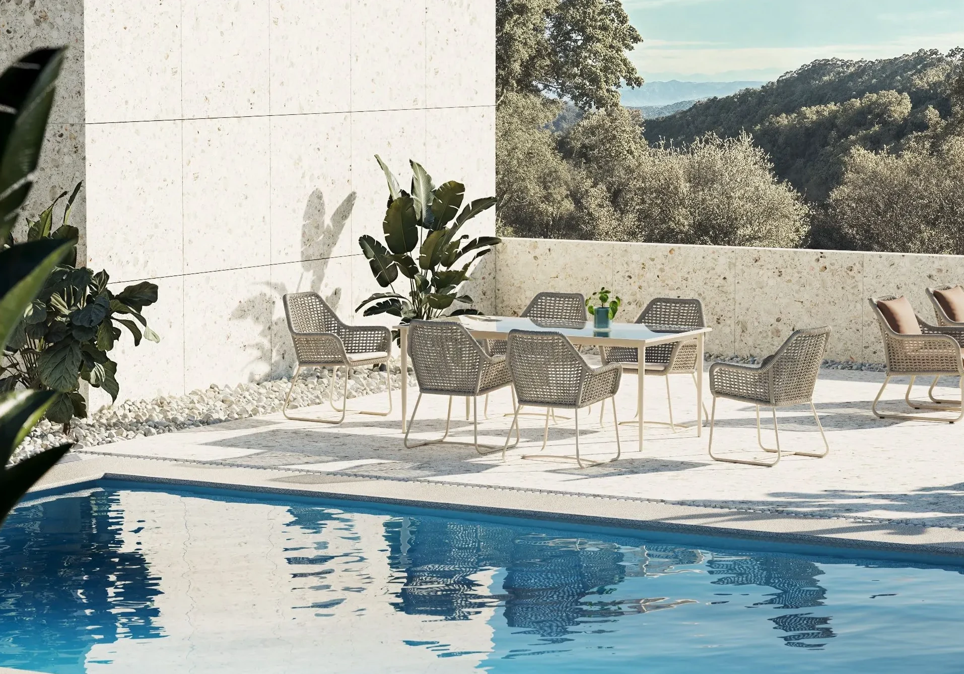 Su patrón de fibras entrelazadas y su nueva gama de colores hacen renacer la colección para convertirla en la pieza central de un exterior. Un diseño que equilibra resistencia y elegancia para realzar la belleza del entorno.